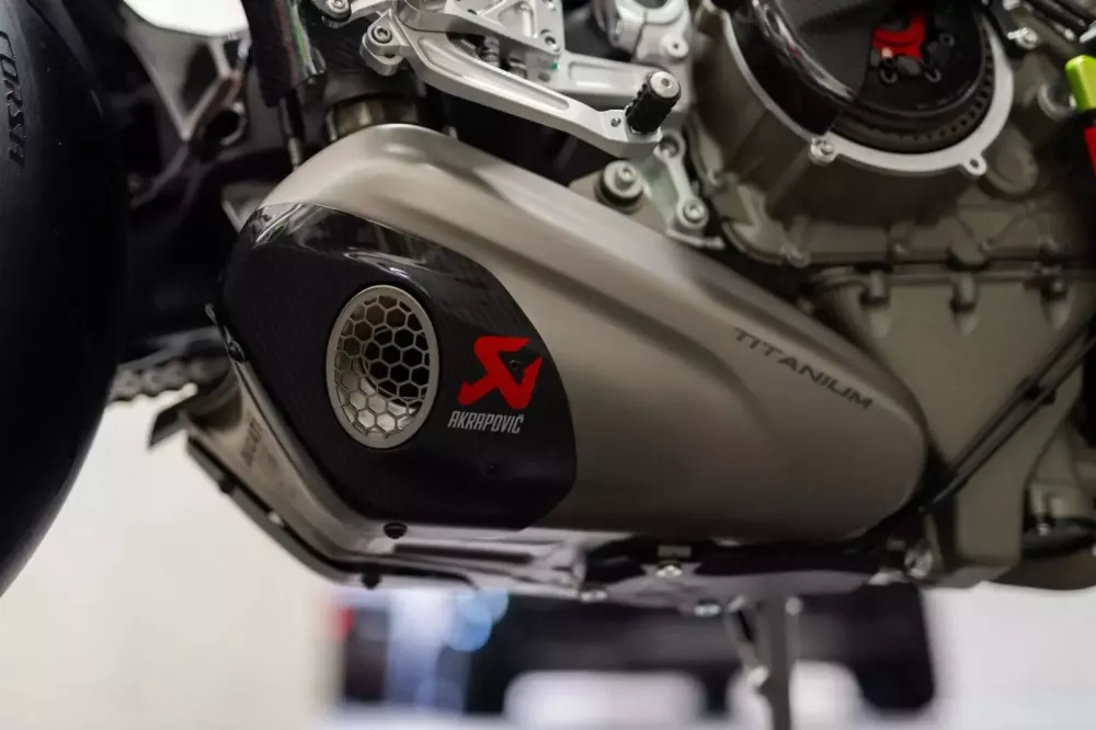 Những điểm nhấn ngoại hình khác bao gồm yên xe solo màu đen, nắp bình xăng nhôm Ducati by Rizoma và kẹp phanh Brembo Stylema R bốn piston. Về mặt cơ khí, chiếc xe được trang bị hệ thống chống bó cứng phanh ABS EVO khi vào cua, hệ thống treo Ohlins bán chủ động có thể điều chỉnh và giảm chấn tay lái. Ngoài ra còn có một tấm kim loại trên đỉnh bình xăng cho biết chiếc xe này mang số thứ tự 230 trong tổng số 630.