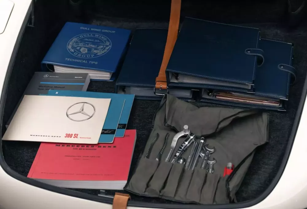 Chiếc 300 SL vẫn giữ nguyên mui cứng nguyên bản , sách hướng dẫn sử dụng trong tập gốc, bộ hành lý hai món, bộ dụng cụ bao gồm kích và lốp dự phòng, cùng một vài giải thưởng gắn liền với tên xe. Tất cả những điều này khẳng định sự chăm chút tỉ mỉ mà chiếc Roadster đặc biệt này đã được gìn giữ trong hơn nửa thế kỷ.