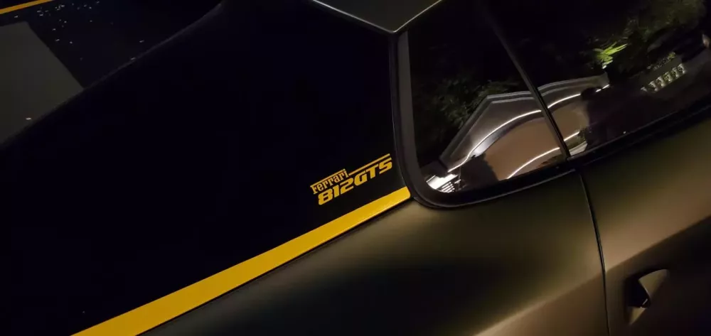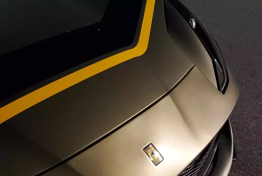 Trong lần đầu được mang đi chơi xa, chiếc xe Ferrari 812 GTS Atelier đã được chủ nhân cho trang điểm lại ngoại thất với các đường sọc kết hợp giữa 2 màu vàng và đen.