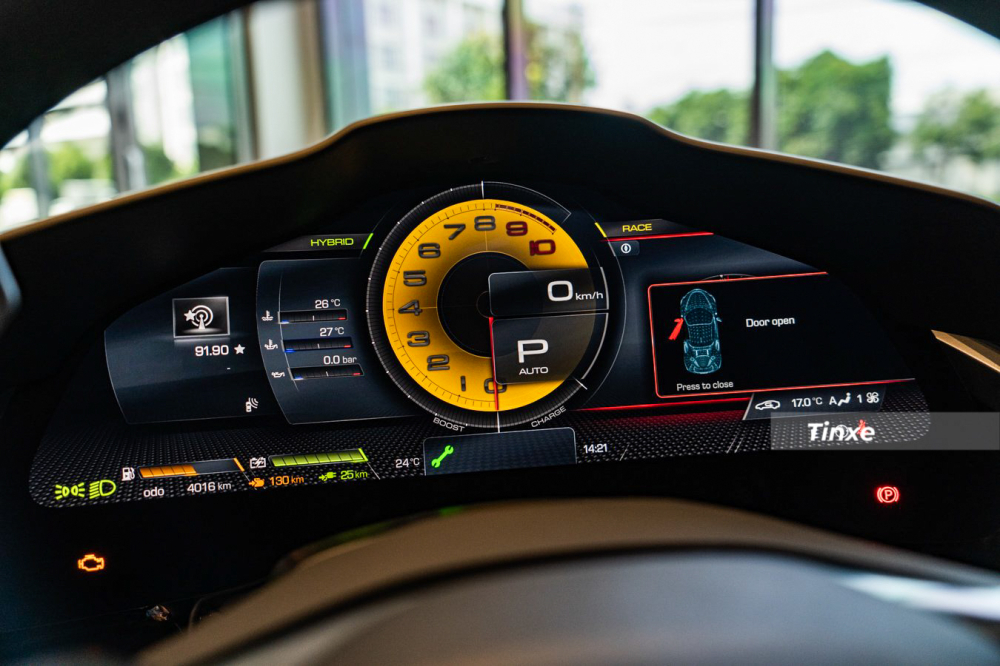 Điểm ấn tượng nhất trên vô-lăng của xe Ferrari SF90 Stradale chính là tài xế có thể khởi động hoặc tắt máy thông qua thao tác lướt ngang nút bấm đề cảm ứng. Bên cạnh đó, xe còn có thêm nút eManettino để người lái chọn giữa eDrive, chạy trong nội thành im lặng, chế độ Hybrid sẽ giúp xe tối ưu tiết kiệm xăng, Performance sẽ cho phép xe lúc nào cũng sử dụng động cơ V8 và Qualify giúp xe chạy hết tốc lực, ưu tiên hiệu suất vận hành, ở chế độ này, mô-tơ điện sẽ được phép sản sinh công suất tối đa.