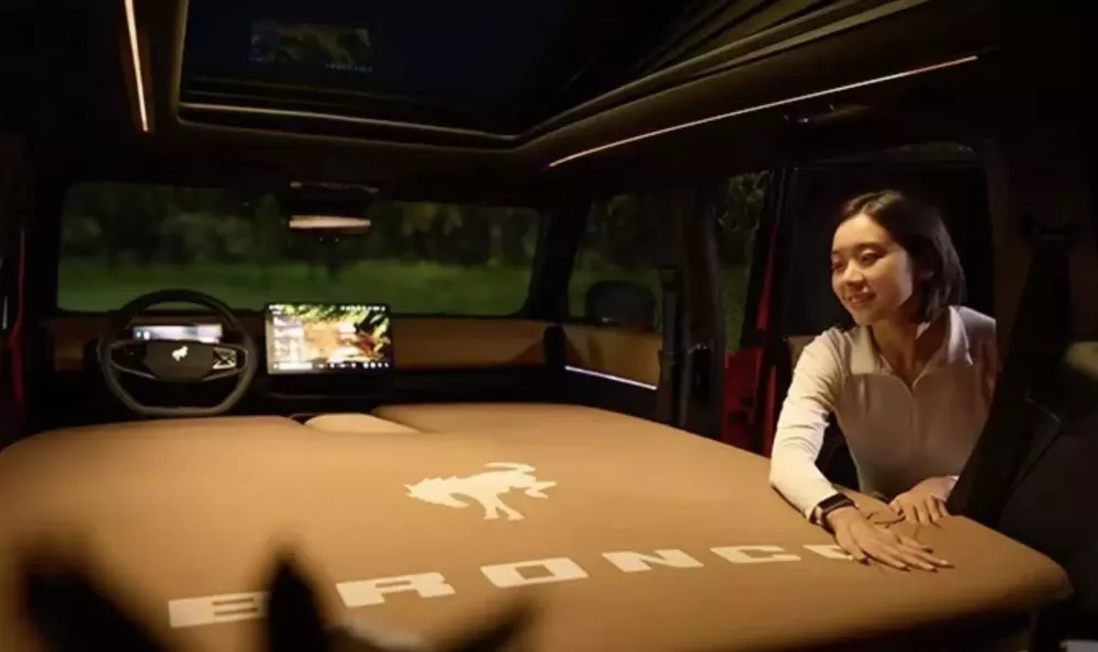 Để nội thất thực sự đa năng, tựa đầu ghế trước có thể tự động gập xuống, cho phép ghế nằm phẳng. Ford thậm chí còn cung cấp nệm hơi mang thương hiệu Bronco cho cả hai hàng ghế, biến chiếc SUV thành một chiếc xe cắm trại nhỏ gọn.
