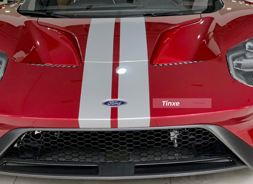 Chiếc siêu xe Ford GT thế hệ mới đầu tiên về dải đất hình chữ S ban đầu sở hữu màu sơn đỏ sẫm nhưng nay đã được trang trí thêm 2 sọc màu bạc chạy từ nắp capô lên trần và ra cánh gió phía sau của xe rất ấn tượng và tạo điểm nhấn cho ngoại hình của xe. Chi tiết này gợi nhớ đến xe Ford GT '67 Heritage Edition giới hạn sản xuất trong 1 năm.