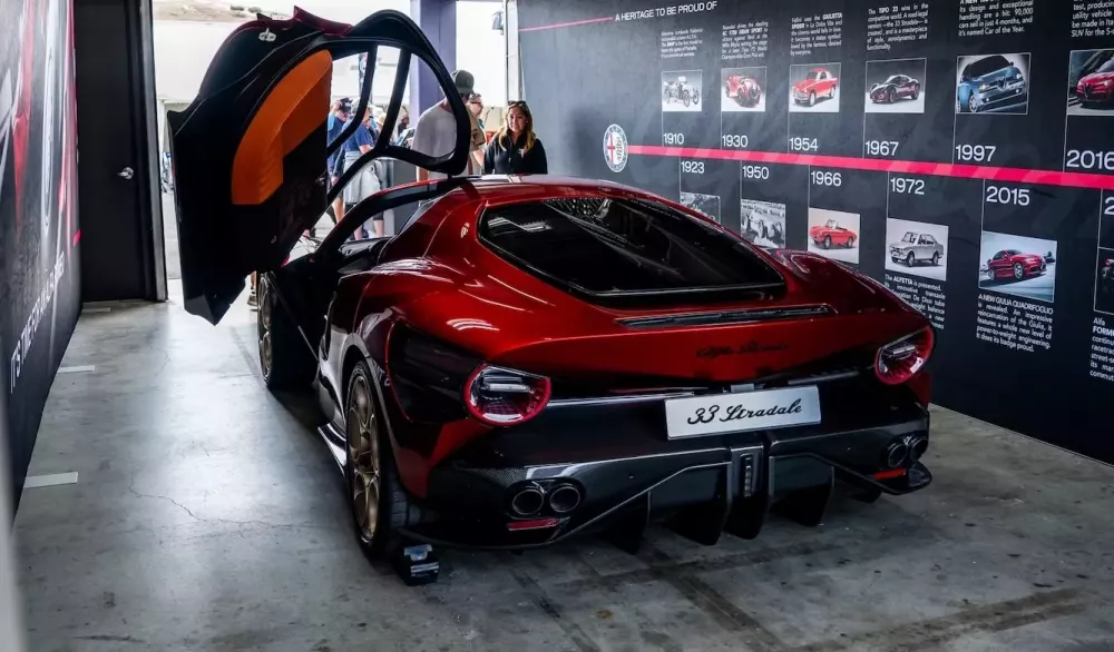 Chiếc xe đã có mặt tại bốn sự kiện danh giá nhất trong tuần. Motorlux đã trưng bày chiếc xe độc quyền này cùng với Giulia, Stelvio và Tonale, trong khi Hagerty House mang đến cho khách mời cơ hội chiêm ngưỡng cận cảnh chiếc xe tại Pebble Beach.