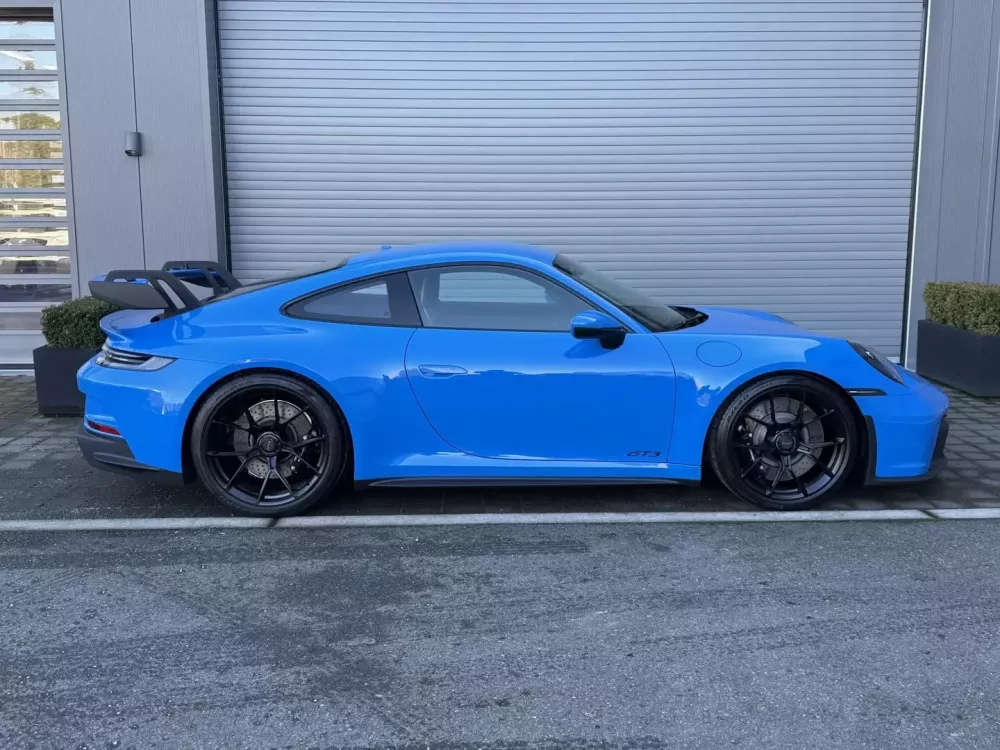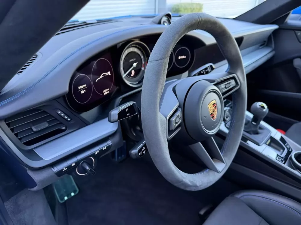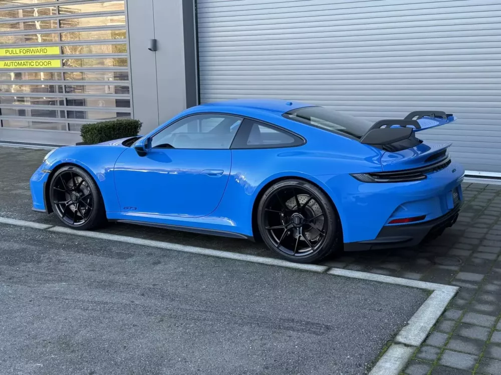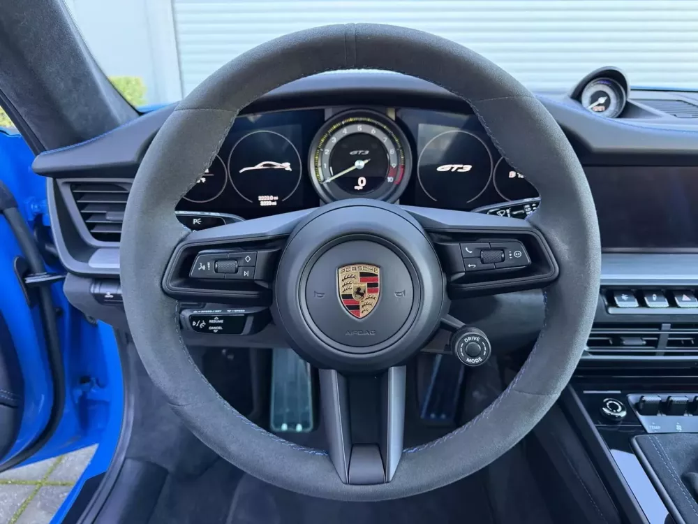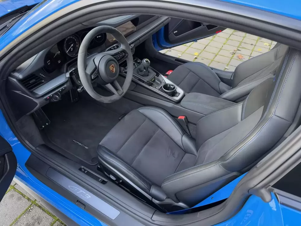 Ngoài ra, chiếc 911 này còn được trang bị đèn pha LED, cánh gió sau dạng cổ thiên nga, đèn hậu thiết kế độc quyền, cùng bộ mâm GT3 khóa trung tâm 20 inch phía trước và 21 inch phía sau màu đen với lốp Pirelli P Zero Corsa và phanh đĩa thông gió ở cả bốn bánh. May mắn thay, xe có hệ thống nâng trục trước, và bạn cũng có hệ thống lái trục sau với cấu hình đặc biệt này. Một sự kết hợp tuyệt vời, theo tôi.