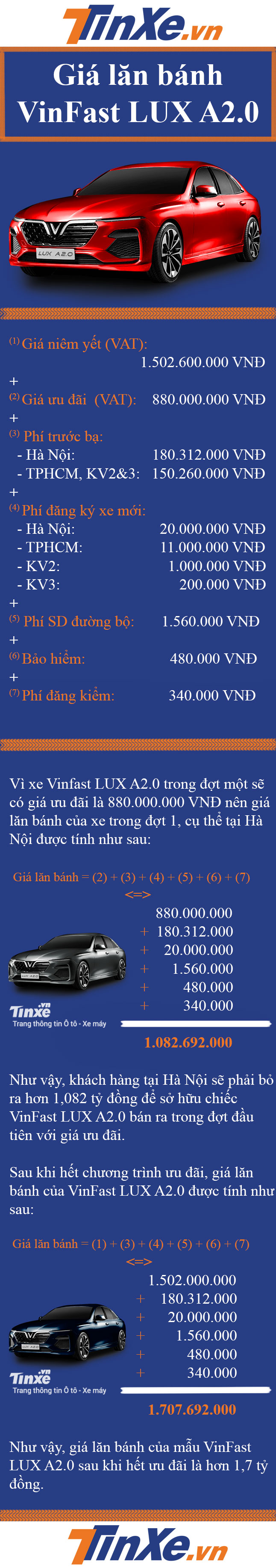 [Infographic]: Giá lăn bánh xe VinFast LUX A2.0 - xe sedan đầu tiên của Việt Nam - là bao nhiêu?