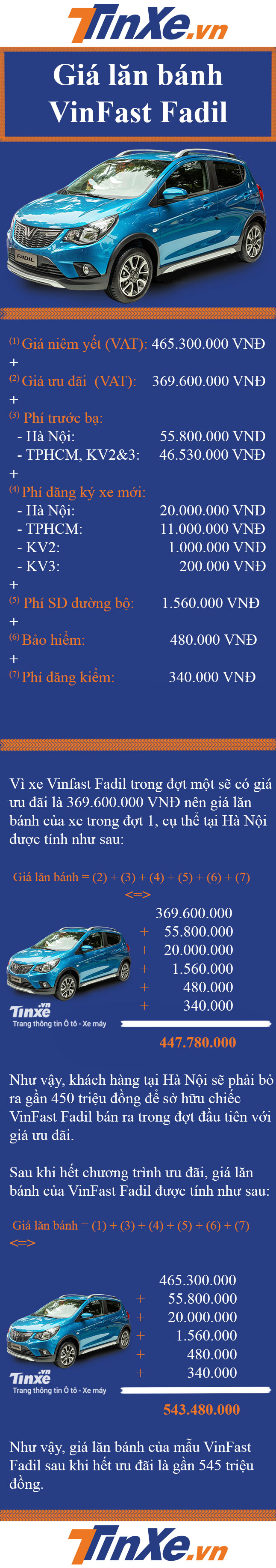 [Infographic] Xe VinFast Fadil có giá lăn bánh gần 450 triệu cho đợt hàng đầu tiên