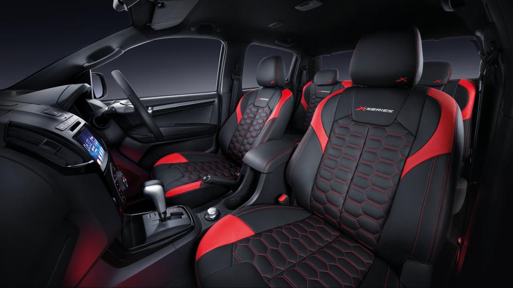 Vào bên trong, X-Series có ghế bọc da đệm lông họa tiết tổ ong, thảm trải sàn đặc biệt, đèn sàn màu đỏ, tấm nẹp bậc cửa phát sáng, một camera 360 độ và đầu đọc thẻ Touch ‘n Go tích hợp trong để thay thế hệ thống SmartTAG của tài xế. Phần còn lại của khoang lái được giữ nguyên không thay đổi gì.
