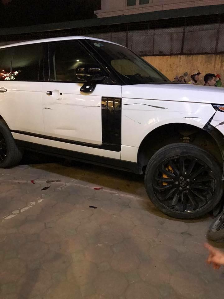 Vụ tai nạn khiến chiếc Range Rover Autobiography hư hỏng nặng phần đầu xe, có ít nhất 2 chiếc xe máy cuốn vào gầm xe chiếc SUV hạng sang.