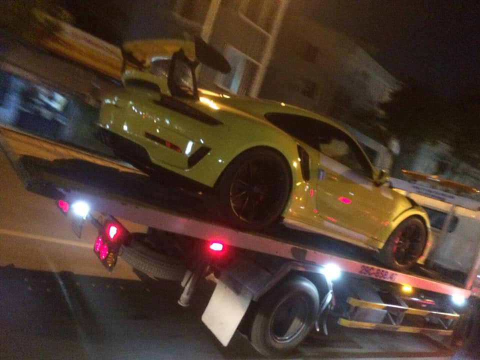 Trong tối cùng ngày, siêu xe Porsche 911 GT3 RS đời 2019 đầu tiên cập bến tại Việt Nam cũng đã thông quan và nhiều khả năng sẽ vận chuyển về Porsche Việt Nam. Ảnh: Lê Trường Ân