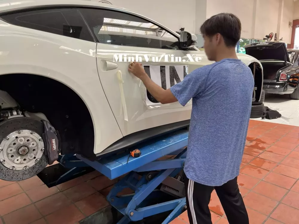 Chiếc siêu xe Ferrari F12 Berlinetta mới lộ diện được dán bộ tem UN nguyên bản mang màu trắng, đây cũng là chiếc F12 duy nhất sở hữu màu trắng, 4 xe còn lại đều mang màu đỏ.