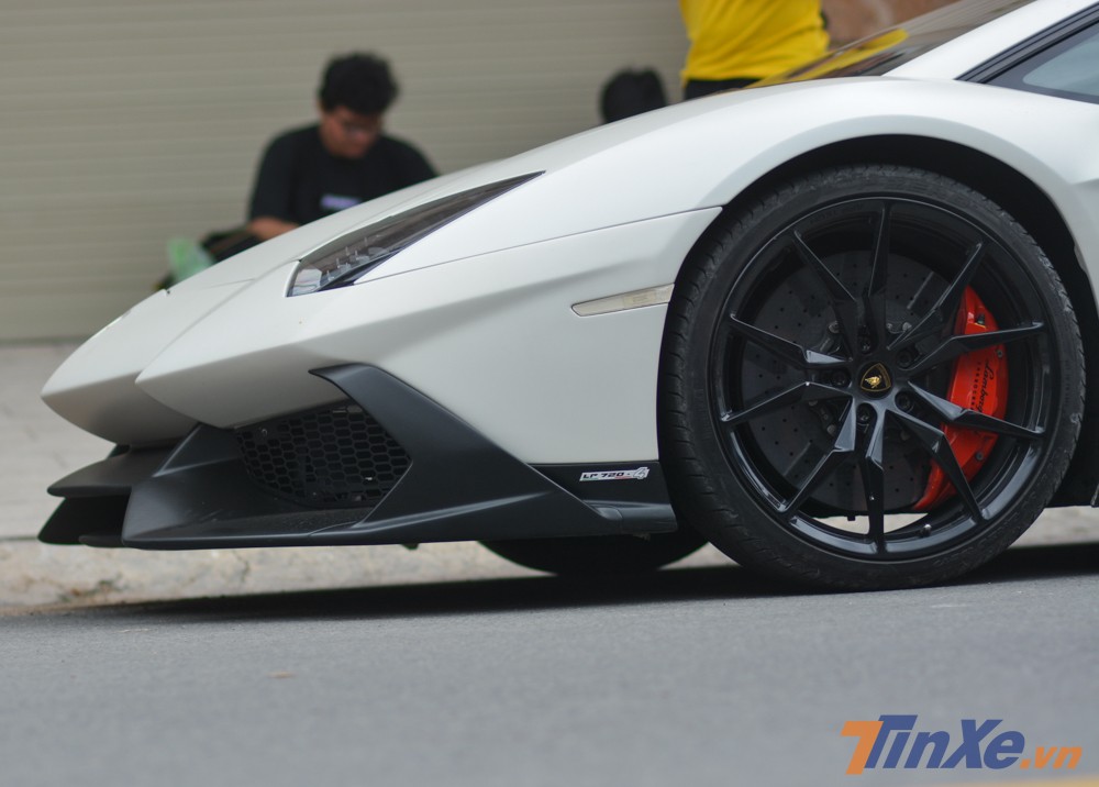 Được biết, siêu xe Lamborghini Aventador LP700-4 độ body kit bản giới hạn LP720-4 50º Anniversario cũng là chiếc Aventador Coupe đầu tiên có mặt tại Hà Nội ngay khi xe về nước. Khác với những chiếc Lamborghini Aventador LP700-4 lăn bánh tại Việt Nam, phần cản va trước và hốc gió của "siêu bò" này được nâng cấp lên độ body kit bản giới hạn LP720-4 50º Anniversario mang đến cái nhìn rất hầm hố và bắt mắt. Bên hông xe cũng có nẹp sườn và hốc gió mới theo phiên bản giới hạn Lamborghini Aventador LP720-4 50º Anniversario vốn chỉ sản xuất 100 chiếc trên toàn thế giới.
