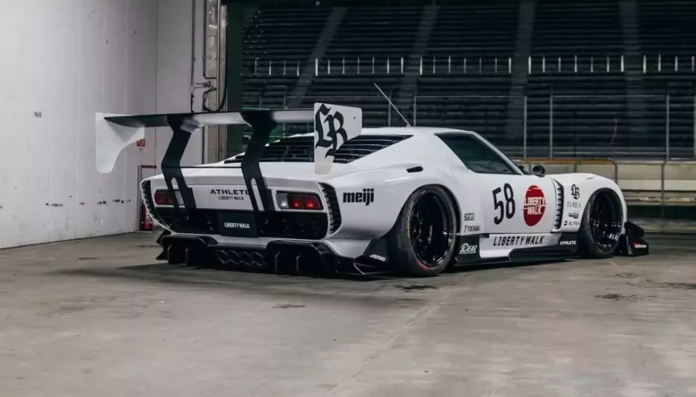 Chiếc xe đang được đề cập có phần mở rộng chắn bùn trước nổi tiếng của Liberty Walk và ba phần tư phía sau được mở rộng. Nó cũng có một cánh gió khổng lồ ở phía sau, bộ khuếch tán mới, các chi tiết ốp sườn, một cánh gió cản trước lớn và một vài yếu tố khác chắc chắn góp phần tạo nên dáng vẻ độc đáo của nó.