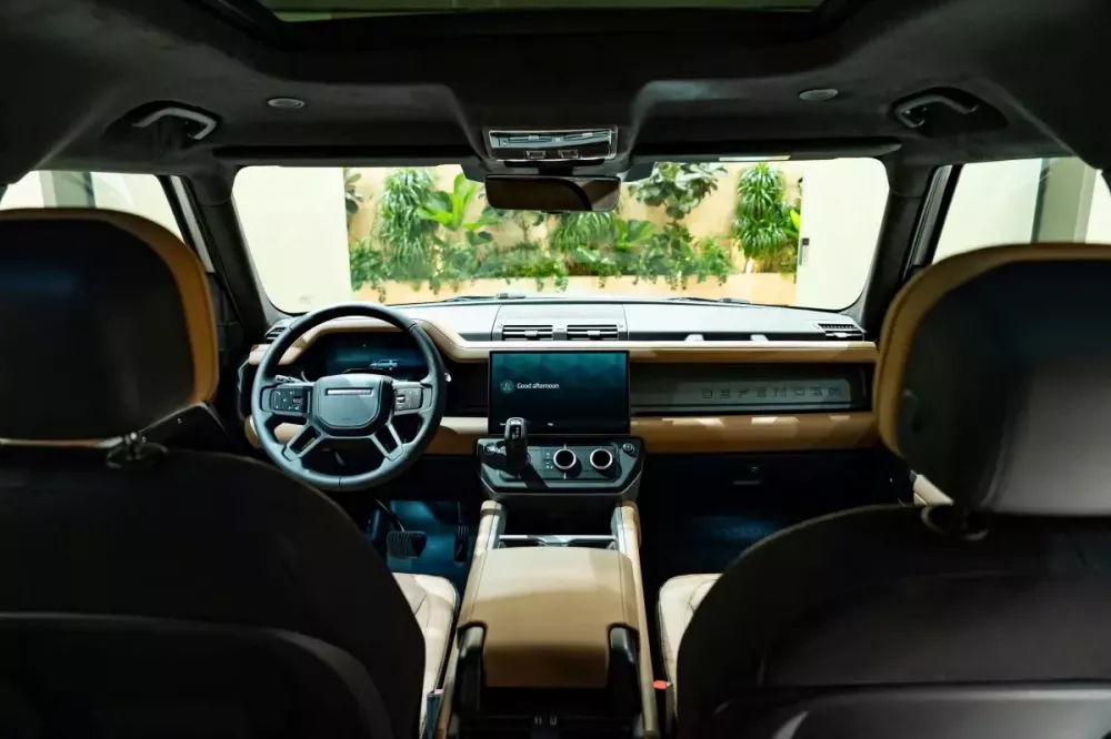 Bảng táp-lô được bố trí lại theo hướng công thái học, đi kèm các giải pháp lưu trữ thông minh như ngăn trượt và hộc chứa kín. Trên Defender 130, tùy chọn hàng ghế Captain Seat độc lập ở hàng ghế thứ hai hướng tới nhóm khách hàng Việt Nam ưu tiên sự thoải mái và riêng tư, đặc biệt khi sử dụng xe như một SUV gia đình cao cấp.