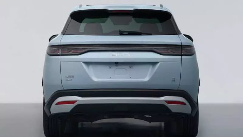 Vòm bánh của BYD Song L được ốp nhựa tạo thêm chút chắc chắn cho chiếc SUV này. Các tính năng khác của xe là tay nắm cửa có thể thu vào và cửa sổ phía sau có tông màu. Nhìn từ phía sau, Song L sử dụng cụm đèn hậu đặc trưng của BYD với họa tiết nút thắt tích hợp của Trung Quốc. Hơn nữa, chiếc crossover mới của BYD còn có cánh gió trên mui và hệ thống treo sau độc lập.