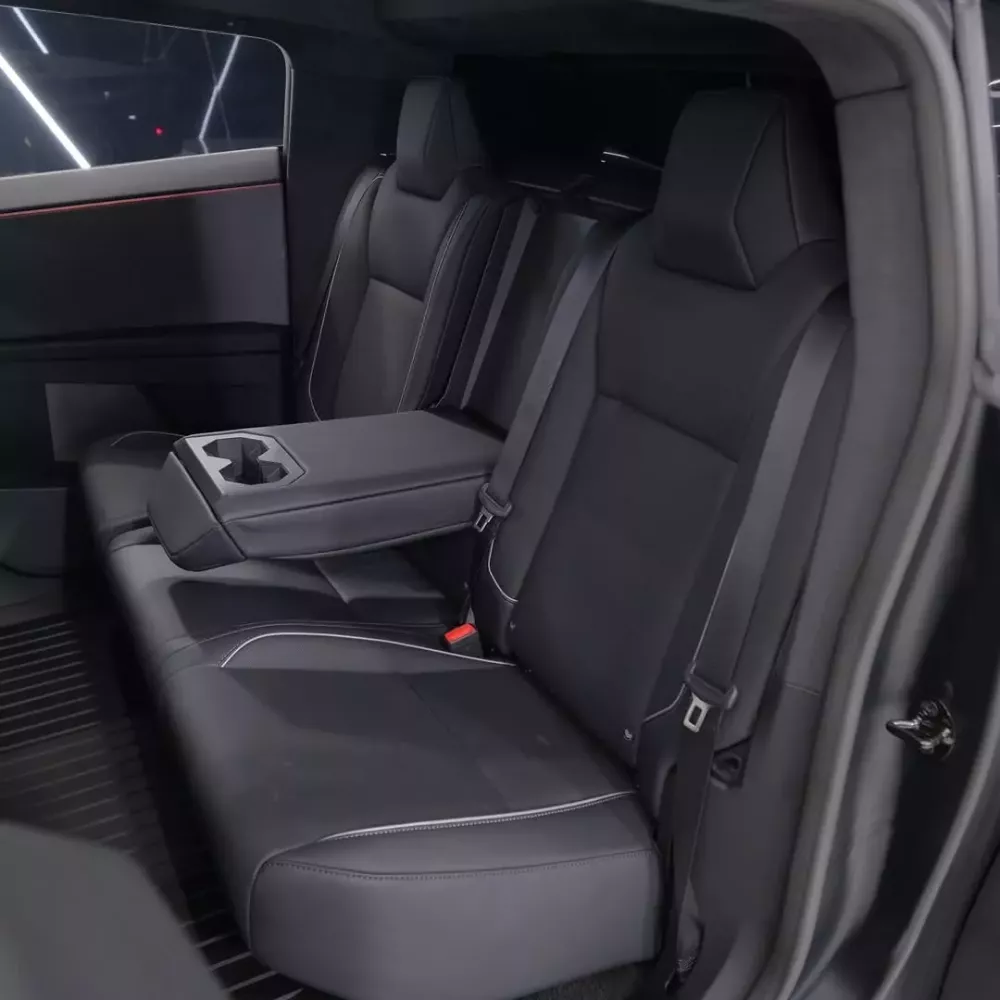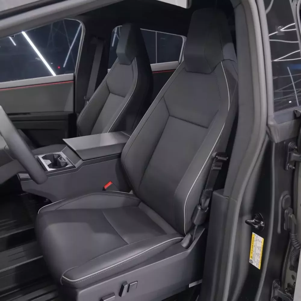 Bên trong, Tesla Cybertruck trông khá đơn điệu, và mặc dù chúng ta không thể hoàn toàn chắc chắn, nhưng có khả năng đó là nội thất bọc da tiêu chuẩn với đường viền trắng và các chi tiết màu đen khác, cũng như hệ thống đèn chiếu sáng nội thất và các tính năng thông thường khác.
