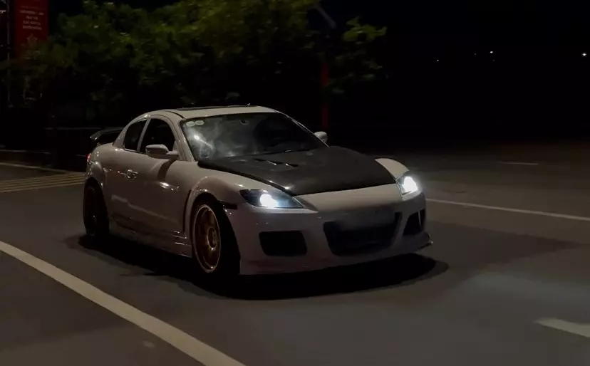 Chiếc xe Mazda RX-8 này được chủ nhân lên bộ body kit thân rộng cùng 1 số đồ chơi, mang đến cái nhìn lạ mắt, thậm chí, các video quay lại còn cho thấy hệ thống ống xả của xe bắn ra các tia lửa. Đầu tiên là ngoại thất xe màu trắng phối nhiều chi tiết carbon, chẳng hạn thấy rõ nhất là nắp capo.