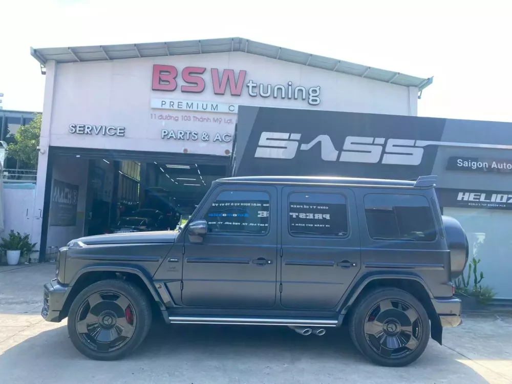 Thay vì như các chủ xe SUV hạng sang Mercedes-AMG G63 khác chọn hãng độ quốc dân là Brabus để thay đổi diện mạo, người mua bán xe sang ở Tp.HCM lại lên gói độ TopCar khá lạ mắt, đi kèm bộ mâm thời thượng nhìn là mê.