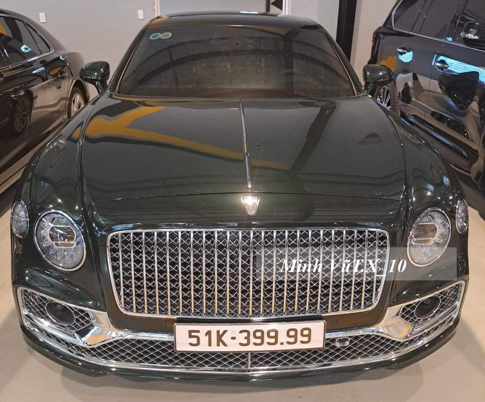 Điều gây ấn tượng trên chiếc xe siêu sang Bentley Flying Spur thế hệ thứ 3, mới được Minh "Nhựa" mua về sử dụng không chỉ việc xe mang màu xanh lá rất hiếm gặp mà còn ở biển số 51K-399.99, còn được đọc là tứ quý 9 hoặc nếu ghép vào biển đẹp 51H-939.39 của chiếc Range Rover SVAutobiography, có thể đọc biển số trên là thần tài nhỏ đi kèm tam hoa 9.