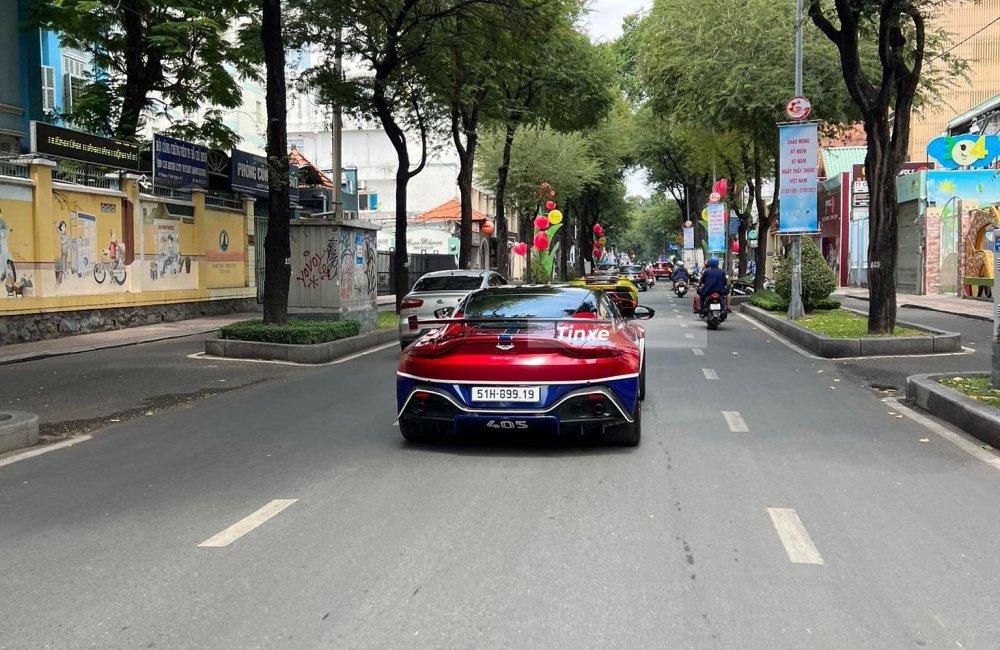 Minh "Nhựa" vẫn chưa lên tiếng việc có bán xe Aston Martin V8 Vantage hay không, thay đó đó, đại gia này rất chăm chỉ mang xe Aston Martin V8 Vantage xuống phố. Mới đây nhất, giới mê xe đã phát hiện ra chiếc xe thể thao hạng sang của Minh "Nhựa" di chuyển trên đường phố quận 1 cùng với siêu xe Lamborghini Huracan LP610-4 độ khủng.