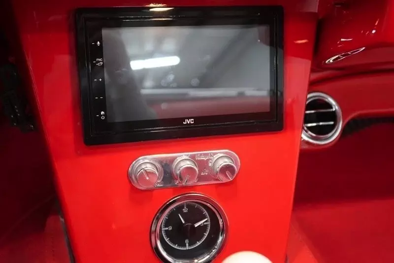 Nội thất được tùy chỉnh với hệ thống điều hòa không khí Vintage Air, cụm đồng hồ Dakota Digital, hệ thống âm thanh nổi Bluetooth tùy chỉnh với bộ khuếch đại Memphis, da ở khắp mọi nơi với ghế ngồi tùy chỉnh ngả ra sau và nắp capo điện.