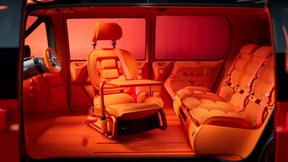 Hành khách được bố trí ngồi phía sau người lái, trên ba ghế có chiều rộng bằng nhau, tất cả đều được trang bị tựa lưng có thể gập lại. Cả ba ghế đều có thể tháo rời và biến thành ghế bành có thể đặt bên ngoài xe để phục vụ các hoạt động ngoài trời.