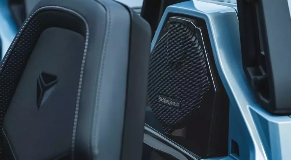 Cụ thể, xe sở hữu hệ thống âm thanh Rockford Fosgate Stage 3 Max + Lighting, hai loa 8 inch gắn bên hông và hai loa 6,5 inch gắn trên tựa đầu, cho tổng công suất âm thanh 700 watt, cùng bộ đèn nội thất XKGlow có thể điều khiển thông qua ứng dụng di động Slingshot LED. Về cơ bản, đây là cấu hình tương tự như phiên bản giới hạn trước đó.