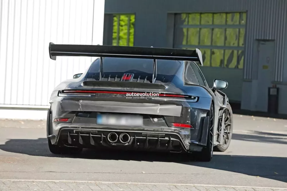 Nguyên mẫu này sở hữu cản sau hoàn toàn mới, tích hợp bộ khuếch tán khí động học hoàn toàn mới với bốn cánh gió dọc mỗi bên. Vẫn giữ nguyên ống xả kép đặt chính giữa như trên 911 GT3 RS bản tiền nâng cấp, mẫu xe mới này còn tự hào sở hữu ống xả lớn hơn.