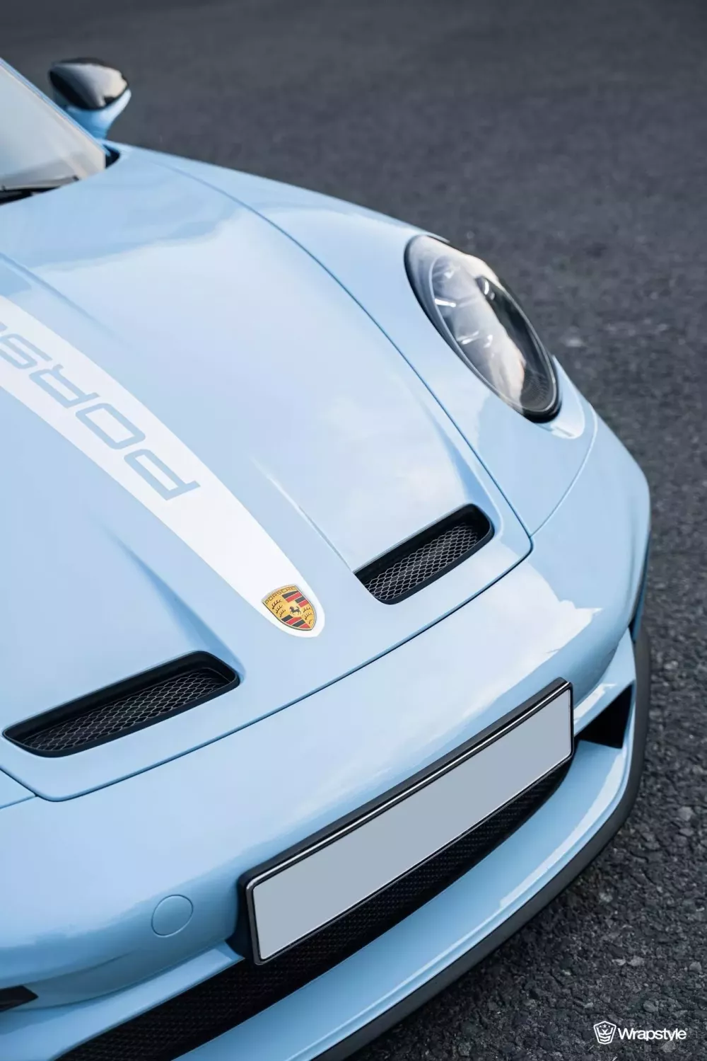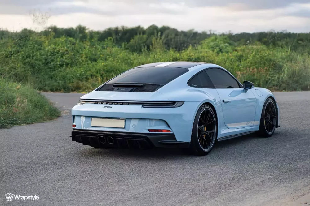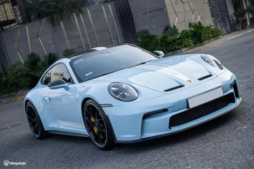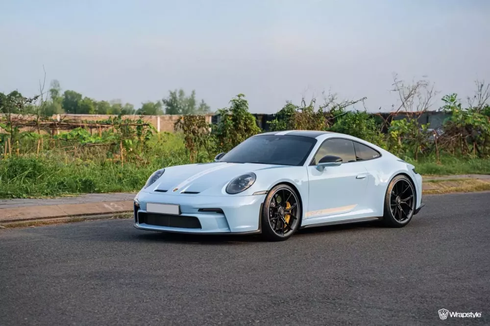 Chiếc Porsche 911 GT3 trong bài này nguyên bản có màu xanh dương đậm mang mã Shark Blue, và hiện tại, xe đã được chủ nhân cho dán đổi màu sang xanh ngọc bích nhạt, chiếc xe cũng vẫn giữ nguyên gói nâng cấp sang Touring mà chồng của Đàm Thu Trang từng thực hiện.