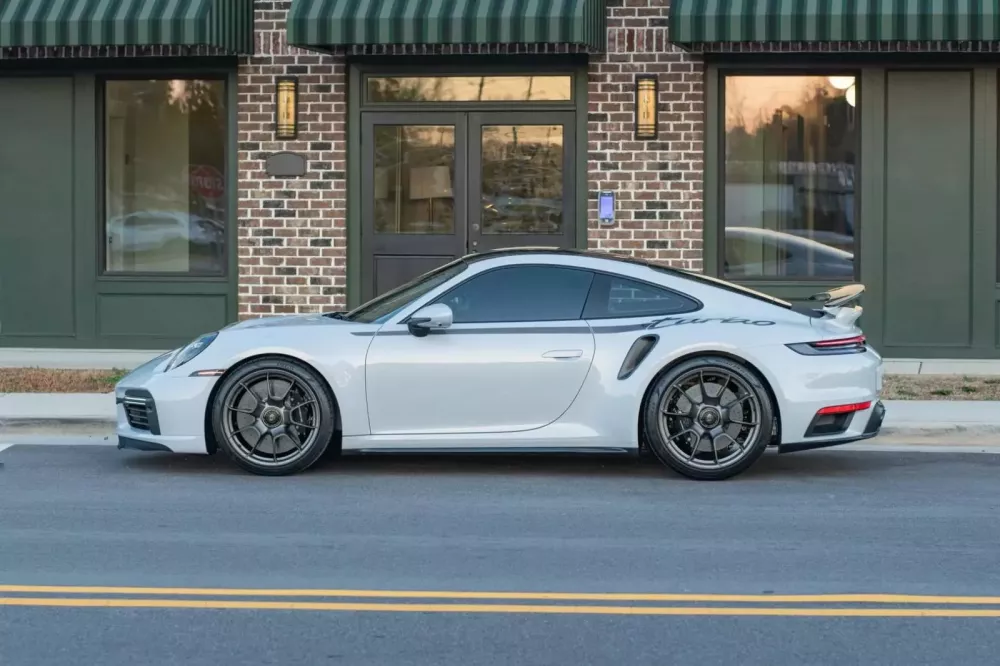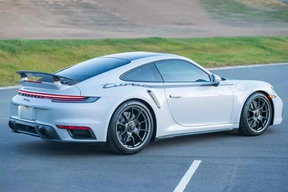 Những điểm nhấn ngoại hình khác bao gồm cánh gió sau, cản trước, đế gương chiếu hậu và lưới tản nhiệt màu xám than chì, cùng với màu sơn ngoại thất xám băng kim loại, đèn hậu thiết kế độc quyền, viền cửa sổ màu đen bóng, cánh gió sau tự động điều chỉnh theo tốc độ, và bộ mâm xe Turbo S Exclusive Design 20 inch và 21 inch khóa trung tâm với lốp Pirelli và hệ thống phanh PCCB với kẹp phanh đa piston màu đen.