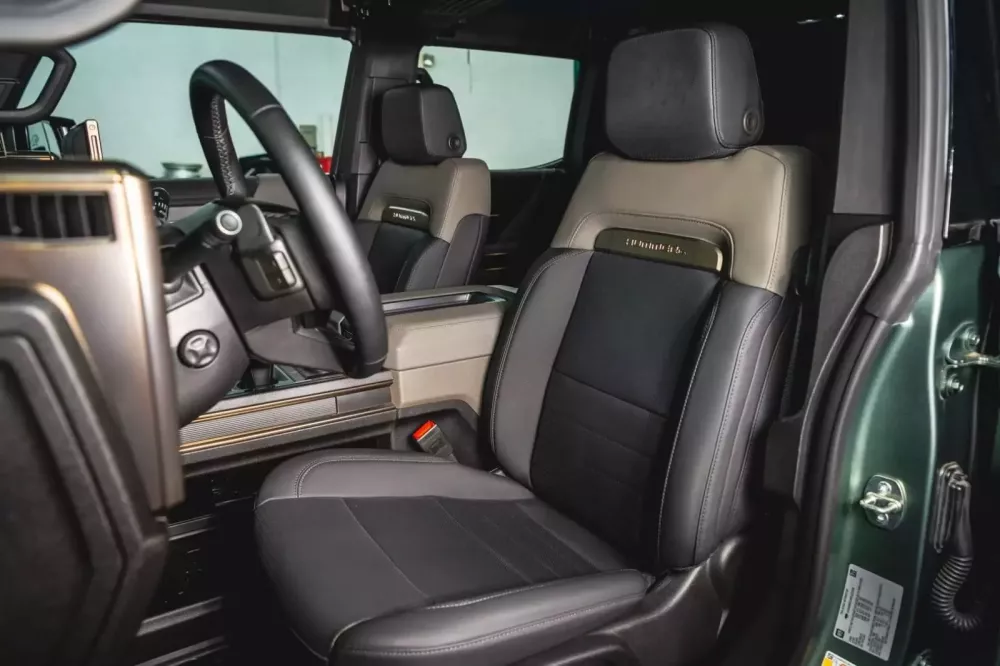 Đây là chiếc GMC Hummer EV SUV Edition 1 đời 2024, ngoại thất màu xanh lá cây mờ (Moonshot Green Matte) và nội thất da màu Lunar Shadow. Xe mới chỉ chạy được 2.000 miles và vừa được bán đấu giá chỉ 68.500 đô la. Một mức giá thấp hơn nhiều so với giá niêm yết ban đầu là 106.000 đô la.