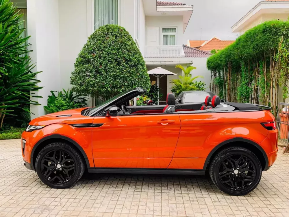 Xe không có nhiều thay đổi so với lúc về nước, chỉ khác bộ mâm sơn màu đen. Ngoài chiếc xe Range Rover Evoque mui trần màu trắng ra, các đại gia Việt còn mang 1 xe về nước, nhưng ngoại thất sơn màu đỏ-cam, nội thất cam đen.