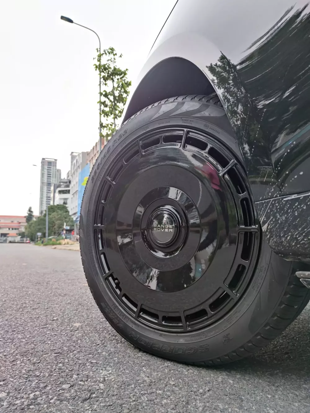 Bộ mâm này giúp chiếc xe Range Rover trở nên khá cá tính, và còn làm cho tổng thể xe thêm ngầu chỉ với 1 tông màu đen bí ẩn. Thiết kế mâm to bản, cùng với điểm nhấn là dù bạn chạy 10 km/h hay 100 km/h, logo mâm xe vẫn đứng yên, như các Rolls-Royce đã tạo ra đẳng cấp cho bộ mâm zin của mình.
