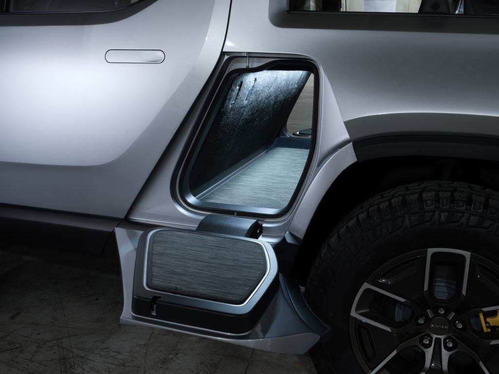 Bên cạnh việc có đủ không gian cho 5 người ngồi, R1T cũng có tích hợp một thùng xe chống nước, và một cốp để hành lý phía trước có dung tích 350 lít. Nó còn có thêm nhiều chỗ trống nữa bên dưới sàn xe ghế phía sau, cũng như bên dưới sàn thùng xe (200 lít), trong khi một hầm chứa nằm giữa thân xe cho đủ chỗ trống trong trường hợp bạn muốn nhét các vật dụng dài như ván trượt tuyết, lều cắm trại, hoặc một bộ gậy đánh gôn.