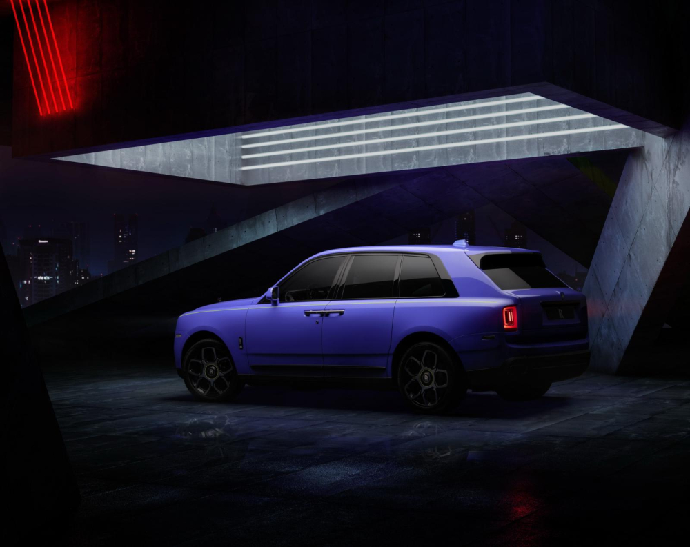 Cuối cùng, mẫu SUV siêu sang Rolls-Royce Cullinan với ngoại thất mang màu Mirabeau (Xanh dương), trong khi đó nội thất được bọc da Arctic màu trắng, đi kèm với đó là một số chi tiết tương phản màu xanh Neon. Được biết, màu xanh dương này được lấy cảm hứng từ loài bướm Rhetus.