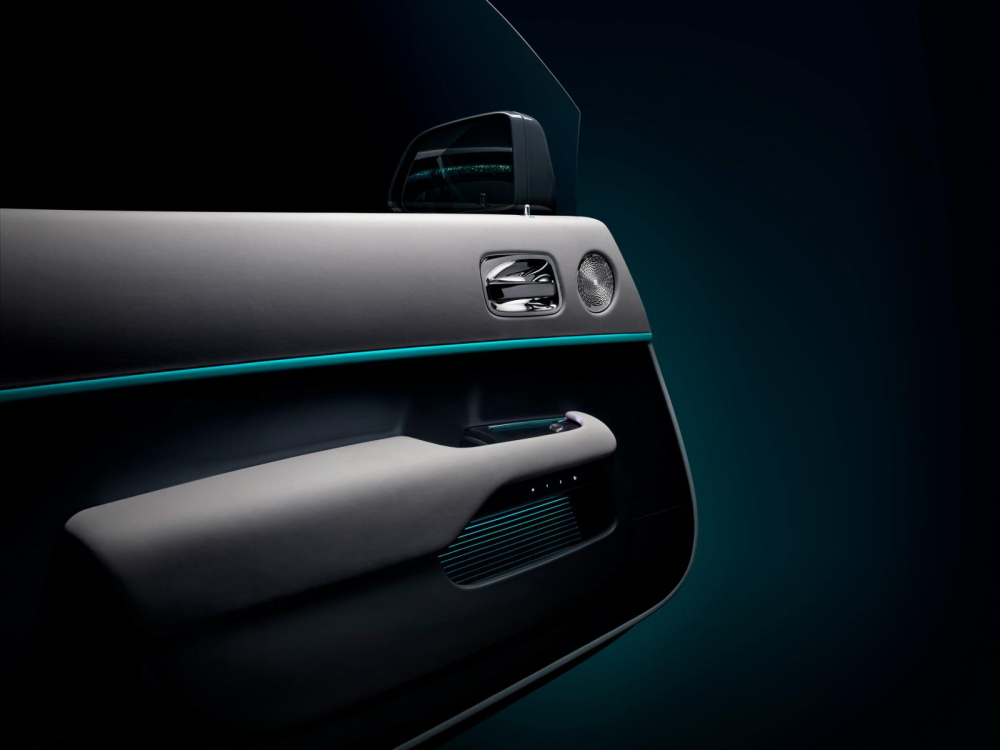 Bên trong khoang lái, thông điệp mà Rolls-Royce muốn truyền tải được ẩn giấu sâu lớp vải ở trần xe, trong khi gợi ý rõ ràng nhất được thể hiện ở gối tựa đầu.