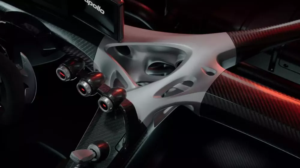 Các đại diện của Apollo Automobil khẳng định nội thất của chiếc xe được thiết kế tối giản như một hệ thống cơ khí chịu lực có thể nhìn thấy, được chế tạo gần như hoàn toàn từ sợi carbon và nhôm, để lộ mọi yếu tố cấu trúc và chức năng.