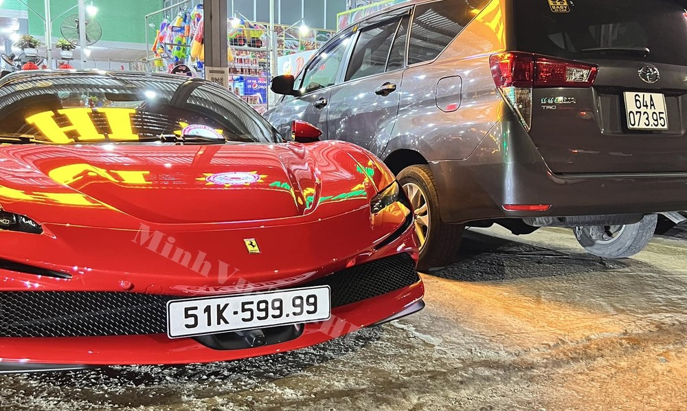 Là chiếc siêu xe mui trần Ferrari SF90 Spider được mang về nước đầu tiên, chiếc xe này phải mất vài tháng mới ra được biển số, và chiếc biển 51K-599.99 hay còn gọi tứ quý 9 càng thể hiện chất riêng của người mua xe, đại gia Jacky. Xe sở hữu màu sơn đỏ rất hiếu chiến, đúng chất là "ngựa chồm" cùng với nhiều chi tiết sơn đen, bộ mâm màu tối.