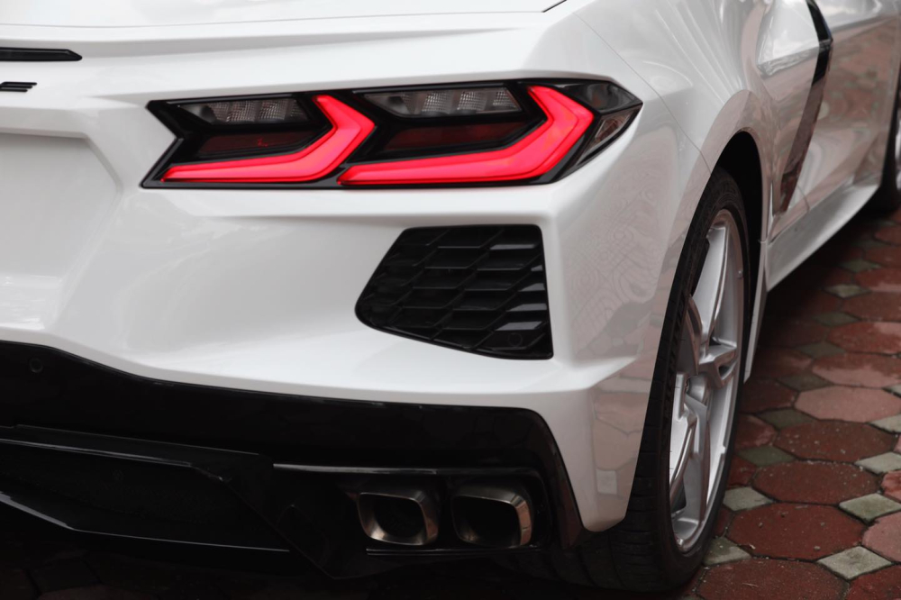 Dù cùng chung một "gà mẹ" Chevrolet như Camaro, nhưng đèn hậu LED của Corvette thế hệ thứ 8 được chăm chút thiết kế sắc sảo hơn, có phần giống với đồ hoạ 3D, mang đến cái nhìn rất đã mắt. Chiếc xe thể thao mui trần Chevrolet Corvette thế hệ thứ 8 đầu tiên về Việt Nam có màu trắng nên phần đuôi xe có cách phối 2 tông màu là nửa đuôi xe trên có màu trắng và nửa phần dưới có màu đen.