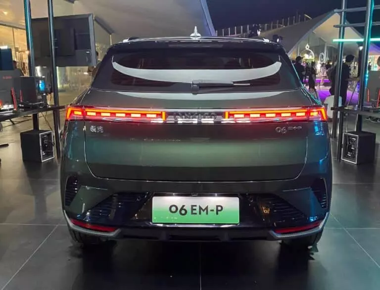 Về thiết kế, điểm nhấn của Lynk & Co 06 EM-P phải đáng nói nhiều nhất chính là việc đèn hậu dạng xuyên thấu bao gồm 330 bóng LED. Logo Lynk & Co ở chính giữa đuôi xe cũng có thể phát sáng, giúp chiếc xe dễ nhận biết hơn.