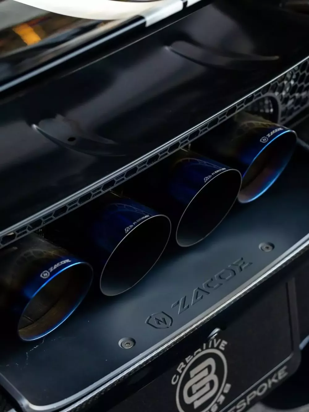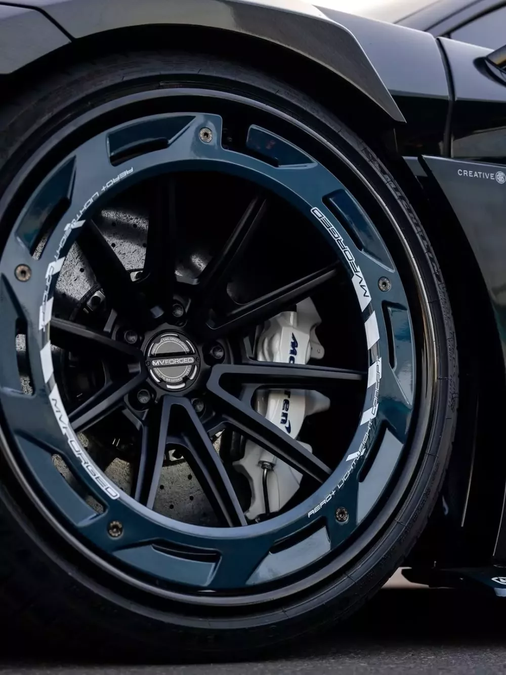 Siêu xe Anh Quốc tự hào với bộ bodykit thân rộng, bao gồm chắn bùn mở rộng, ốp sườn mới, ốp cản trước và sau mới, nắp capo mới, cánh gió lớn phía sau, bộ khuếch tán gió mới, cùng một vài chi tiết nhỏ khác mang đến cảm giác thể thao cho xe.