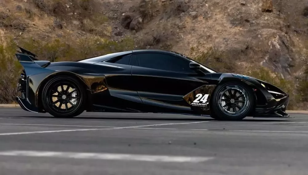 Xe cũng có một vài điểm nhấn màu trắng trên bánh trước, kẹp phanh màu trắng với logo McLaren màu đen, hệ thống ống xả mới với ống xả mới, sọc đua kép và cửa sổ riêng tư. Nội thất dường như được sơn đen trắng.