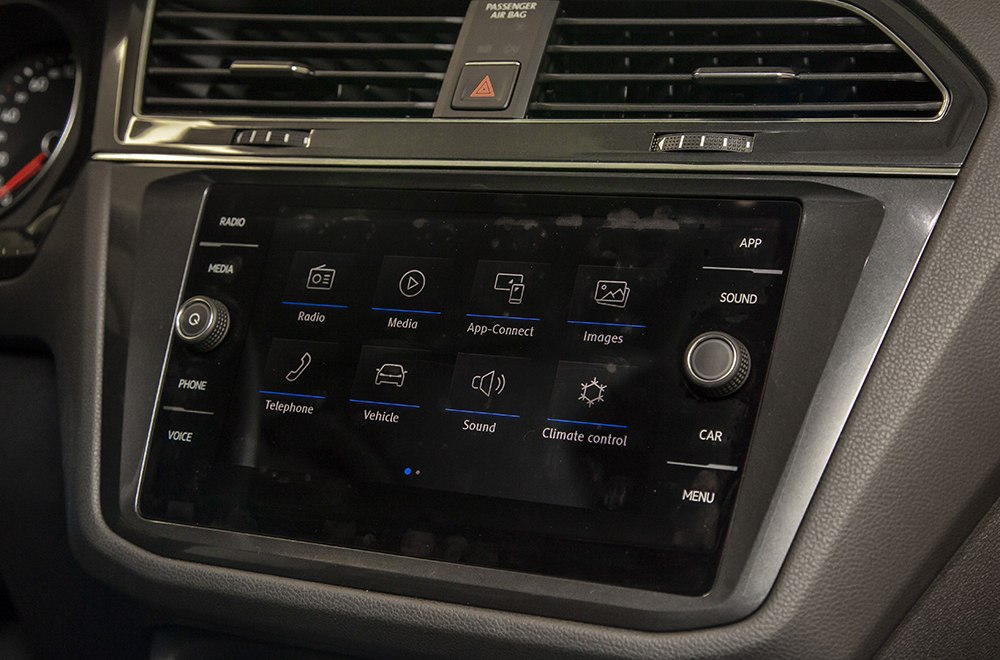 Nội thất bên trong Volkswagen Tiguan Allspace nổi bật với bộ ghế bọc da, ghế lái chỉnh điện 14 hướng, hàng ghế trước tích hợp tính năng mát-xa. Hệ thống giải trí của xe gồm màn hình cảm ứng đa chức năng, hệ thống kết nối Bluetooth, cổng kết USB, dàn âm thành 8 loa, điều hòa tự động 3 vùng, cụm điều khiển riêng cho hàng ghế sau, vô lăng điều chỉnh 4 hướng và tự thu lại khi va đập. Cốp xe đóng/mở bằng điện, đi kèm cảm biến đá chân.