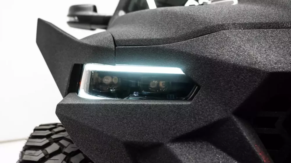 Bậc lên xuống tự động giúp tài xế và hành khách dễ dàng lên xuống xe. Lớp phủ thép được thiết kế để làm chệch hướng đá, cành cây, mảnh vỡ hoặc bất cứ thứ gì có thể cản trở. Thanh đèn trên kính chắn gió giúp tăng cường tầm nhìn.