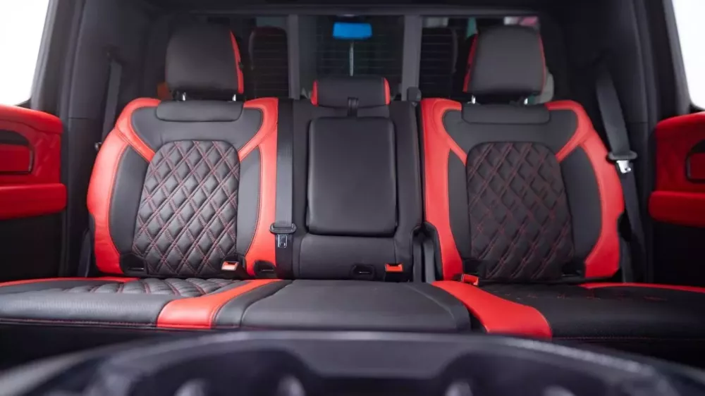 Khoang hành khách của Mega Juggernaut có thể chứa hành khách cao tới 2,1 mét. Ghế ngồi màu đỏ và đen bền bỉ nhưng vẫn thời trang, bọc nệm chống chịu thời tiết. Con quái vật này giá bao nhiêu? SoFlo đang bán nó với giá 240.000 đô la, khá rẻ so với các xe Mercedes-Benz G63 6x6.