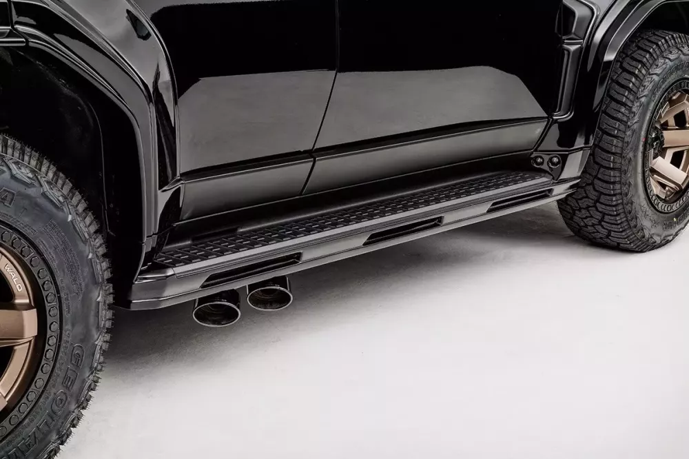 Hãng độ Nhật Bản gần đây đã đăng tải lên mạng xã hội một vài hình ảnh về chiếc Toyota Land Cruiser 250 thế hệ mới đã được độ. Theo phong cách Black Bison, những chiếc xe được độ đã lột xác khá thú vị. Đầu tiên, Wald International đã trang bị cho xe một cặp lỗ mũi lớn trên nắp capo. Cản trước mới và thể thao hơn nhiều so với bản gốc, lưới tản nhiệt cũng được tinh chỉnh.