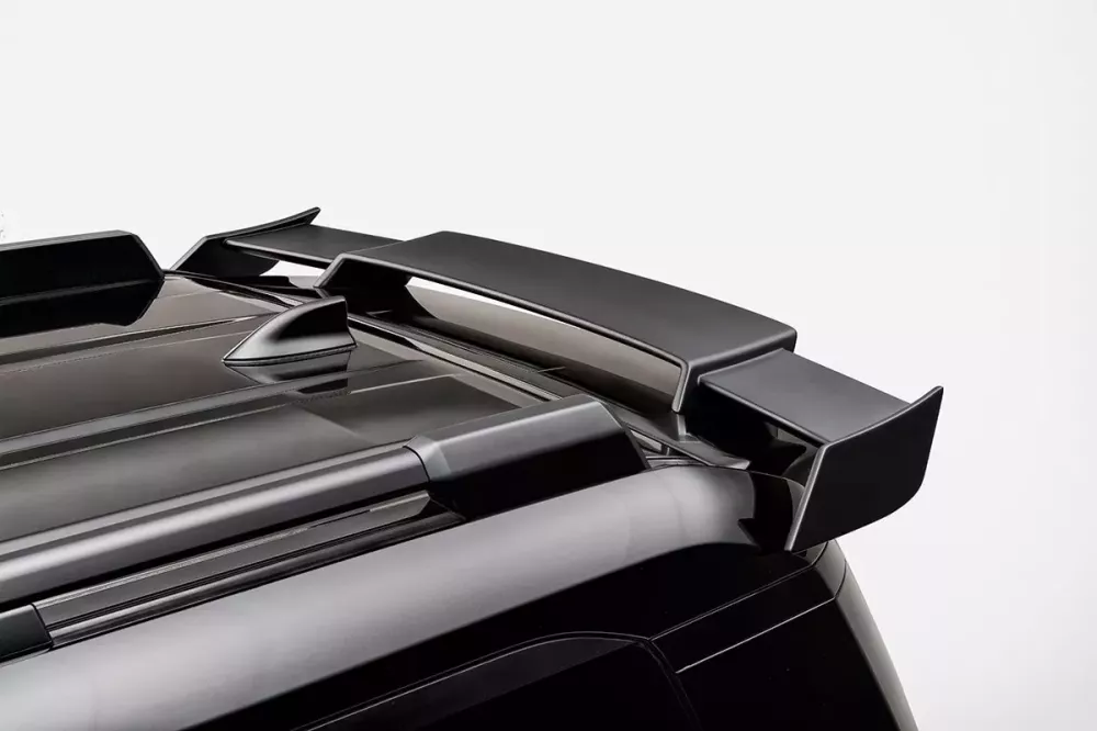 Các chi tiết ốp chắn bùn giúp toàn bộ xe rộng hơn, và bậc lên xuống cũng đồ sộ hơn. Phía sau, cản sau mới được trang bị bộ khuếch tán thể thao. Bộ phận này cũng là nơi chứa đèn phanh phụ. Đèn hậu dường như đã được làm mờ, và viền trang trí phía trên biển số xe giờ đây cũng khác biệt.