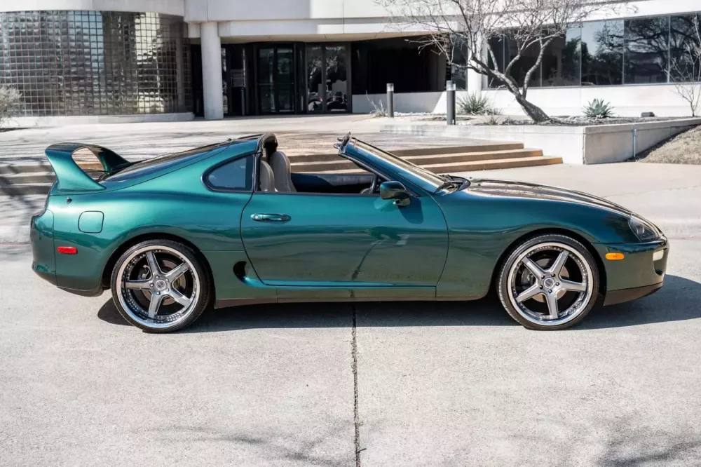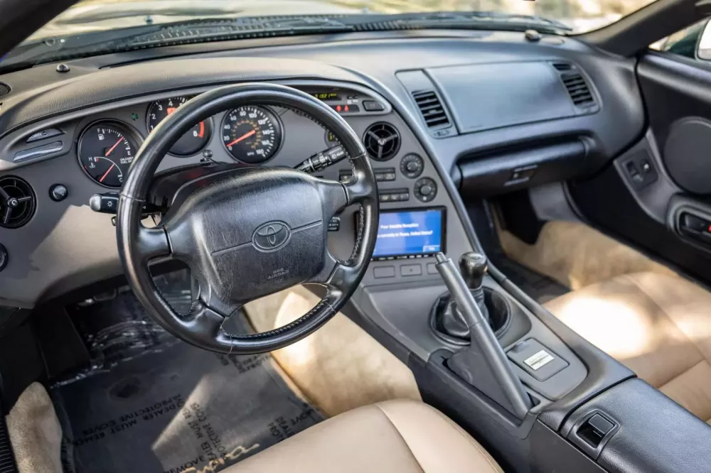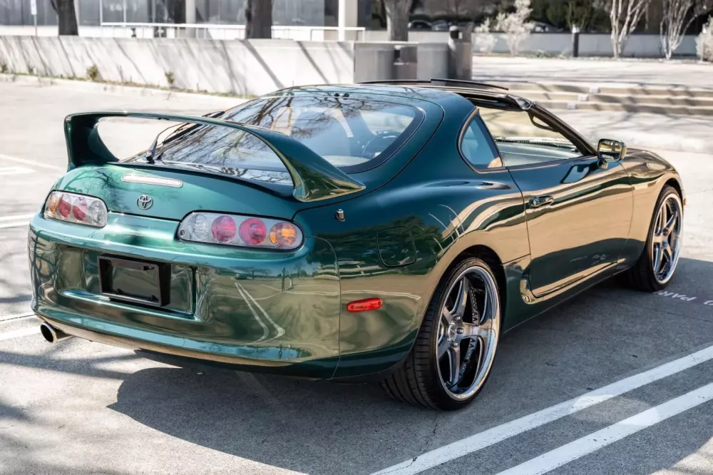 Chiếc Supra thế hệ thứ tư này được sơn màu xanh ngọc trai đậm (Deep Jewel Green Pearl) kết hợp với nội thất da màu nâu nhạt, một cấu hình thường thấy trên phiên bản Toyota Supra kỷ niệm 15 năm 1997.