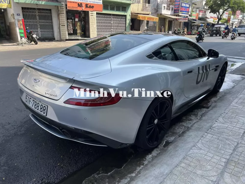 Chiếc Aston Martin Vanquish biển tứ quý 8 vẫn được ông Đặng Lê Nguyên Vũ cho giữ lại bộ áo màu bạc, xe được sơn lại mâm đen, dán thêm logo UN ở cửa xe. Chưa hết, ngoại thất của chiếc Aston Martin Vanquish này còn có nhiều chi tiết carbon từ cản trước, cản sau, nẹp sườn, tay nắm cửa, thanh ngang sườn xe, vỏ gương cho đến toàn bộ mui xe đều bằng chất liệu đắt tiền này.