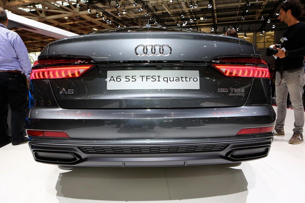 Mẫu Audi A6 mới không thèm giả vờ che giấu rằng nó có hai đầu ống xả hình thang ở phía sau, vậy nên nhà sản xuất chỉ lắp tạm một tấm che bằng nhựa nông toẹt bên trong chi tiết trang trí và thế là hết việc.