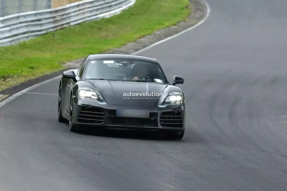 Những hình ảnh này cho thấy xe có các hốc gió lớn ở cản trước, nắp capo cơ bắp, đèn pha đặc trưng của Porsche, vòm bánh xe rộng, vai xe rộng và những khe hút gió nhỏ phía sau cửa. Chiếc xe thử nghiệm này cũng có phanh khí nén và khá nhiều nhãn dán trên cản sau, dường như chưa phải là phiên bản sản xuất cuối cùng.